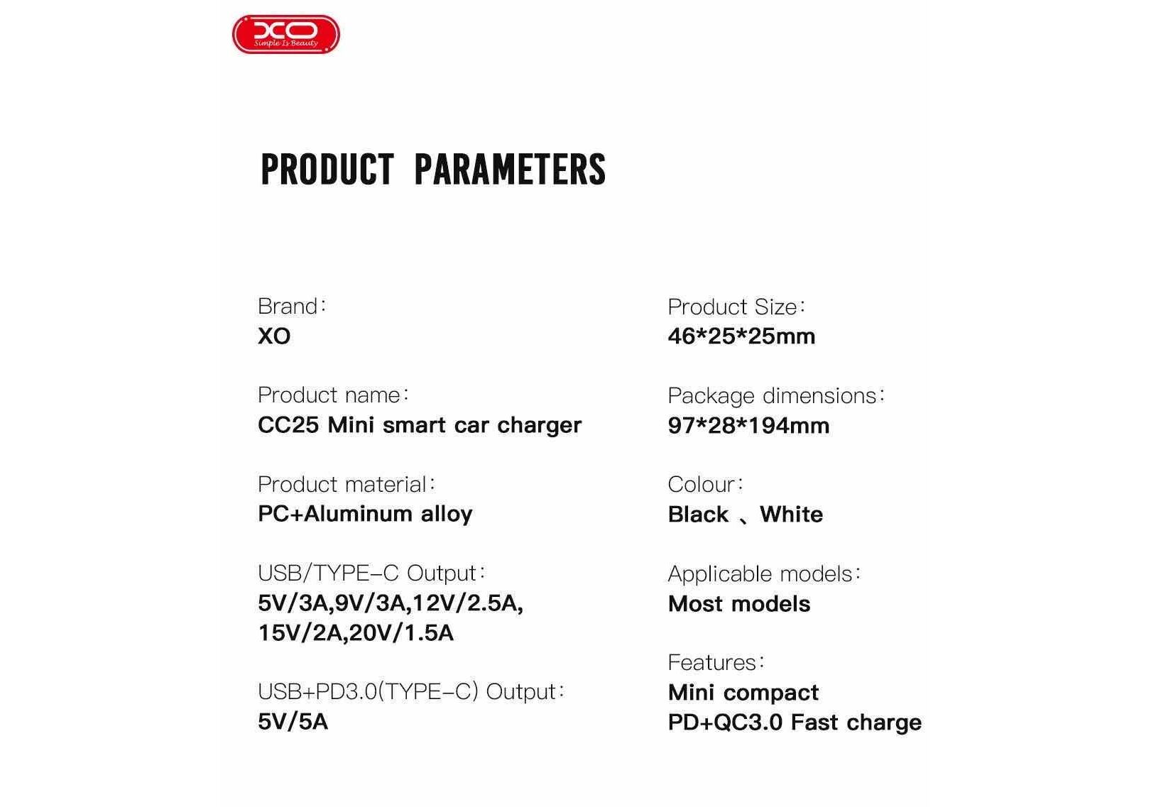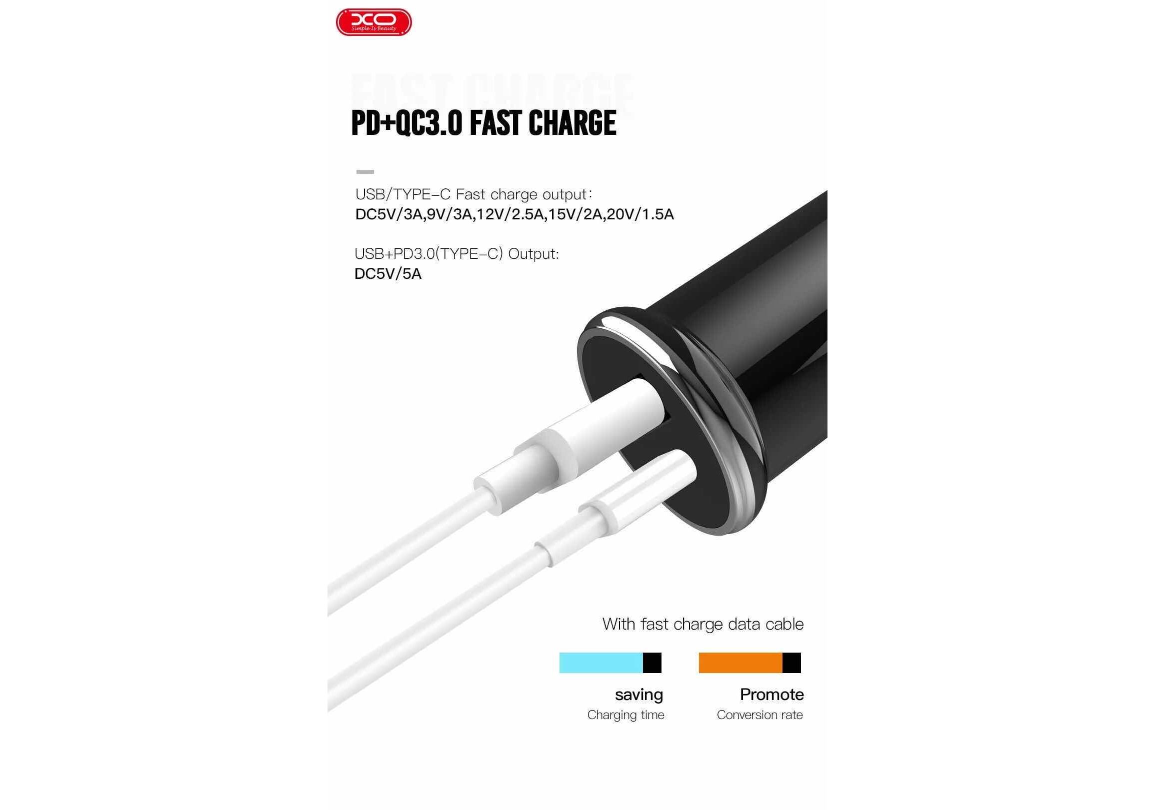 Xo Car Charger PD QC 3.0 Black